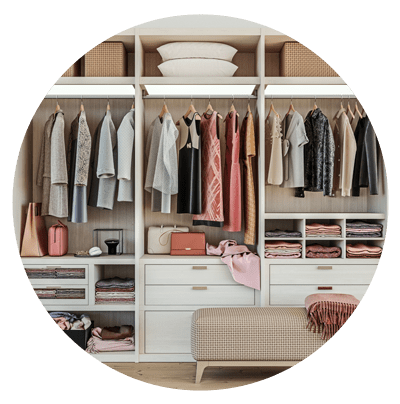 Depuración, revisión, rescate de prendas y accesorios favorecedores, creación de conjuntos, orden y organización (presencial o en línea).